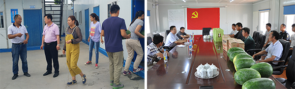 慰問組帶著對辛勤奮戰(zhàn)在一線職工的深切關(guān)心與愛護,每到一個工地,都會詳細察看、詢問工程建設(shè)情況,強調(diào)高溫天氣下的安全生產(chǎn),叮囑有關(guān)負責人合理調(diào)整勞動作業(yè)時間,做好后勤保障工作,加強對飲用水、食品和工地食堂的衛(wèi)生管理,確保一線人員身體健康。同時,慰問組為各項目部送去了茶葉、綠豆、白糖、西瓜、毛巾、香皂等防暑降溫品,把清涼送到了一線人員的心坎上。各項目部一致表示,將按照公司領(lǐng)導的要求,認真做好安全生產(chǎn)工作和施工現(xiàn)場防暑降溫工作,確保工程建設(shè)順利開展。